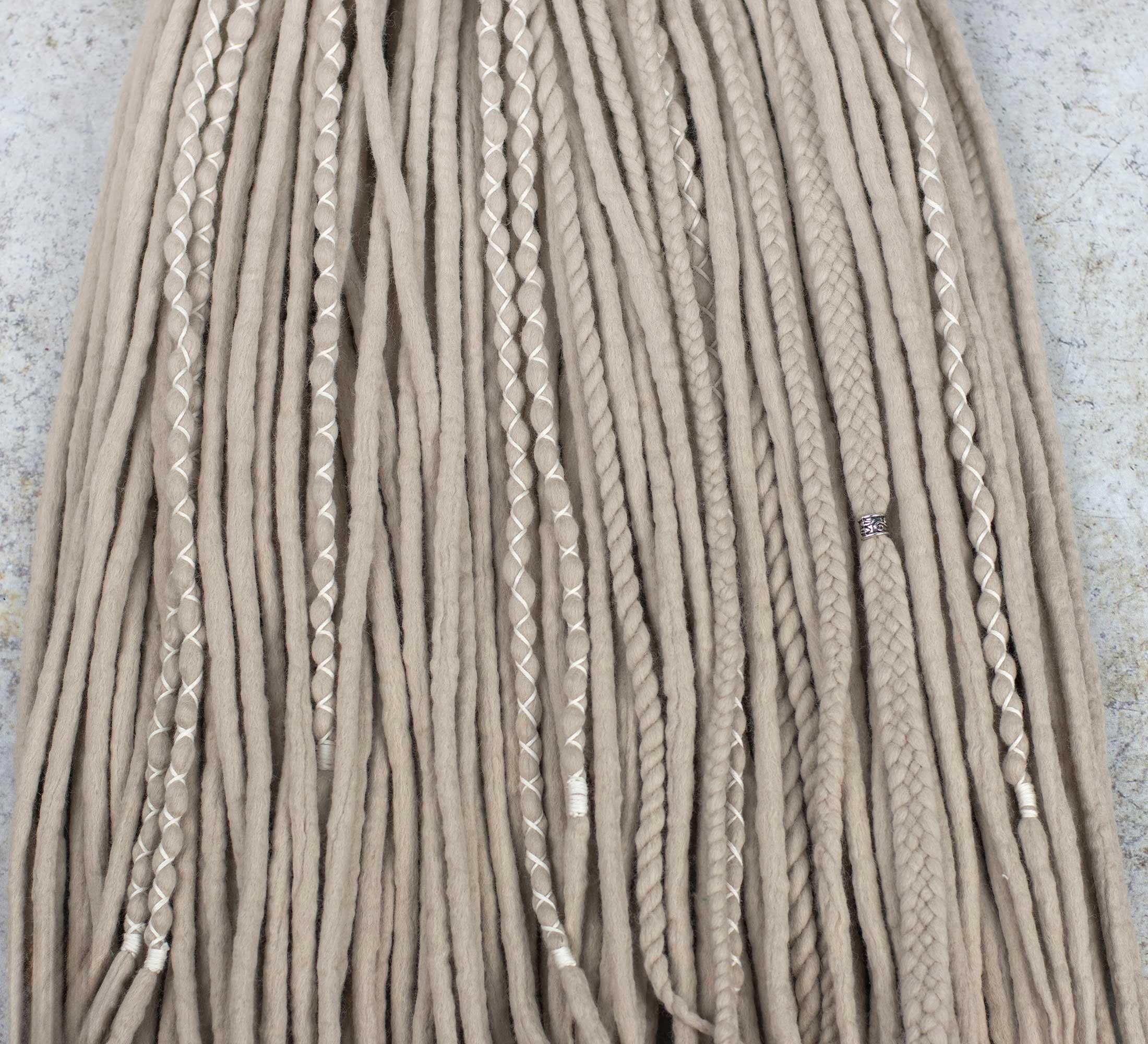 Wool dreadlocks are a unique and fashionable way of self-expression! Dreadlock extensions made of natural materials are soft, durable and easy to maintain.
